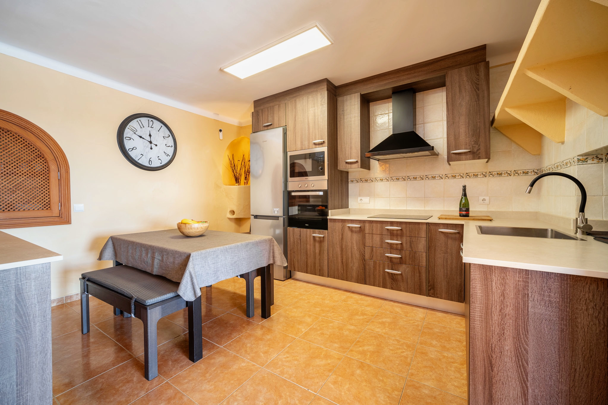 La cocina americana, eléctrica, está equipada con nevera, microondas, horno, congelador, lavadora, lavavajillas, vajilla/cubertería, utensilios/cocina, cafetera, tostadora, hervidor de agua y exprimidor.En la misma planta un dormitorio con cama de matrimonio de 135 x 190 (con Aire Acondicionado y Bomba de calor).