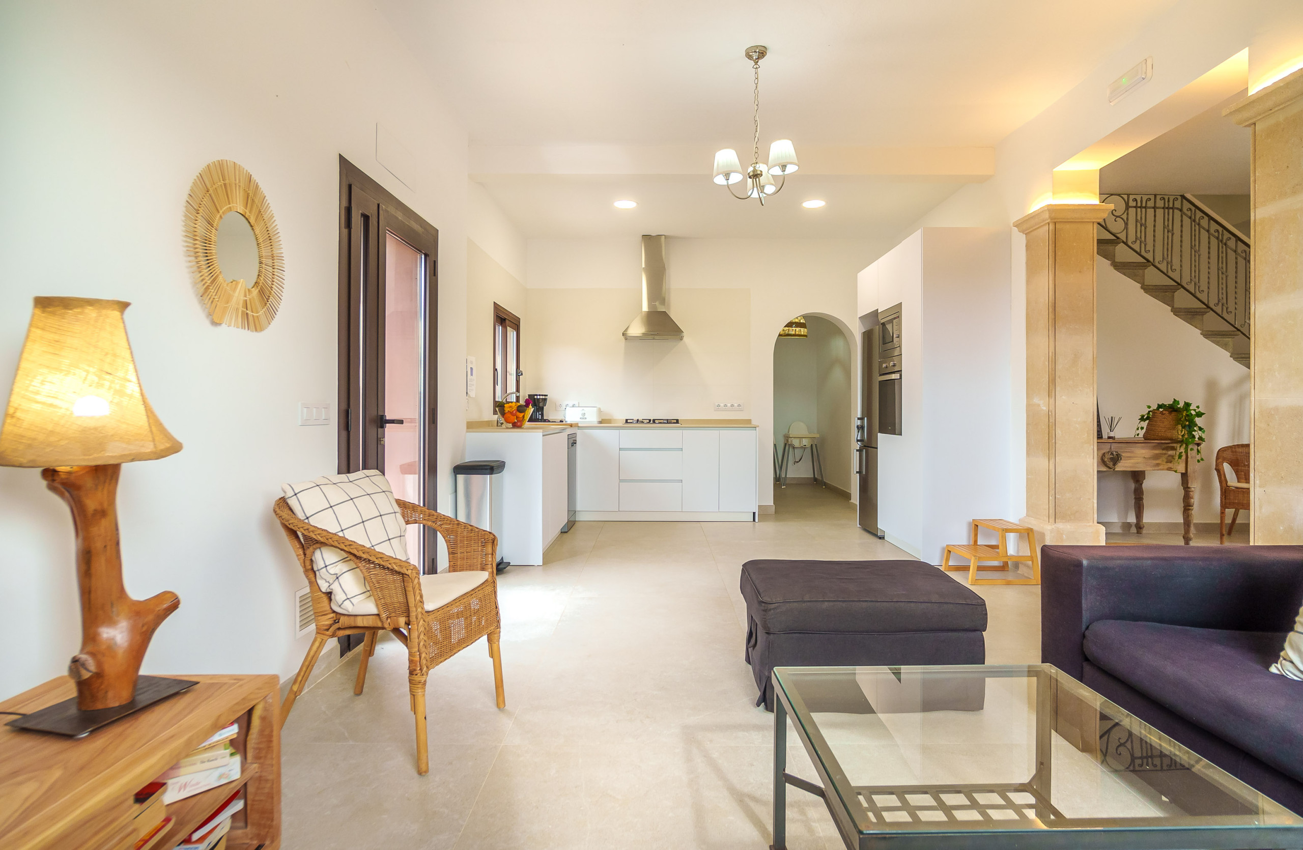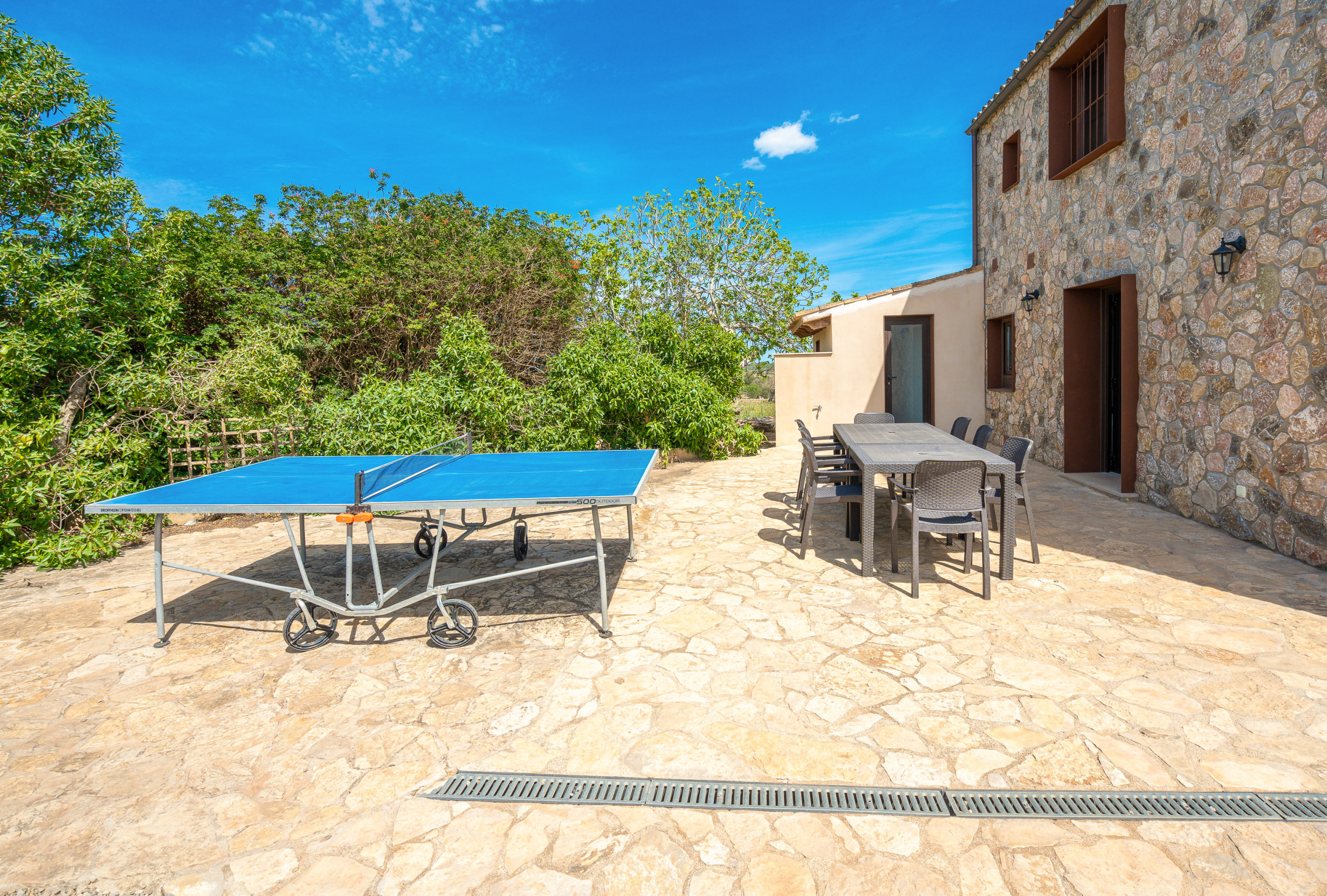 Construida con piedra natural mallorquina, la vivienda conserva el carácter tradicional de la isla, combinándolo con espacios amplios, luminosos y funcionales que garantizan una estancia confortable durante todo el año.