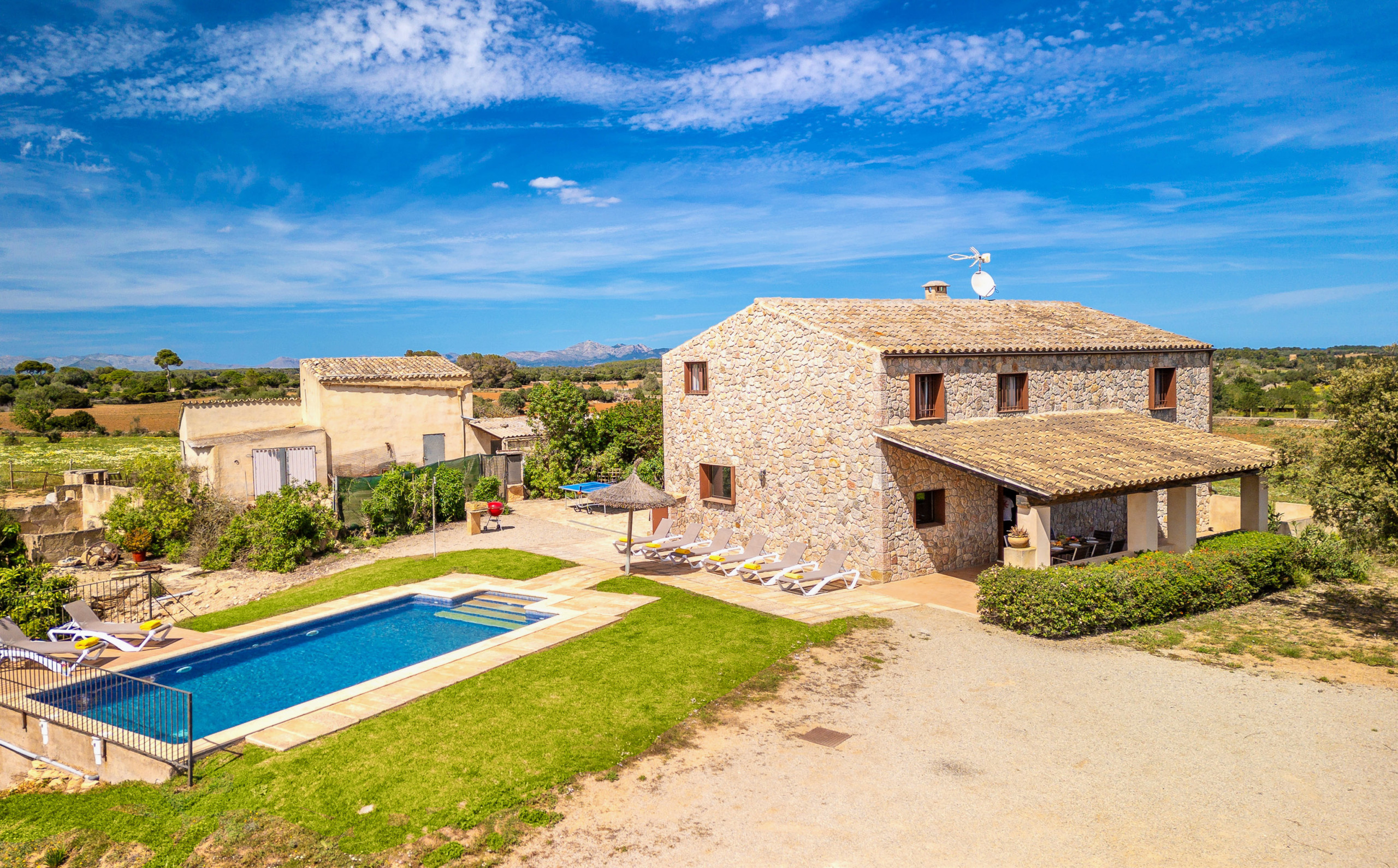 La villa Murero, situada en el municipio de Santa Margalida, es una encantadora villa vacacional en el norte de Mallorca con 4 dormitorios y capacidad para 8 personas, ideal para familias y grupos que buscan tranquilidad, comodidad y autenticidad en un entorno natural.