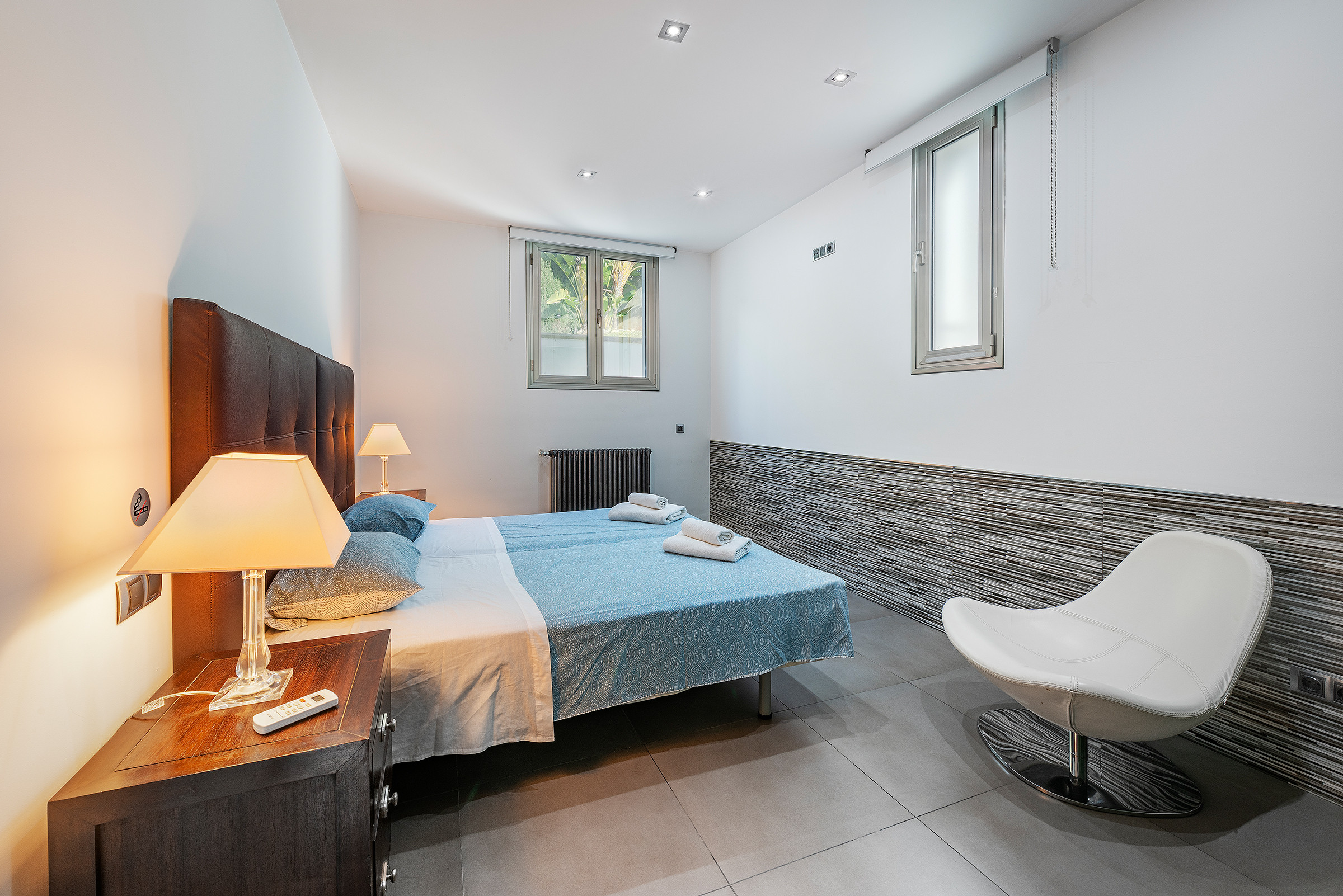 Spektakuläre Luxusvilla im Himmel von Bonaire mit Ferienlizenzen (ETV) für 8 Personen, das Grundstück umfasst 1050m2 mit 400m2 Wohnfläche, das Haus besteht aus drei Etagen. Im Obergeschoss befindet sich der Eingang, ein geräumiges Wohn-Esszimmer, eine voll ausgestattete offene Küche mit Blick auf die Bucht von Pollensa, in dieser Etage finden Sie auch ein Doppelzimmer mit Bad. Im Erdgeschoss gibt es drei Doppelzimmer, drei Badezimmer (zwei davon en suite).