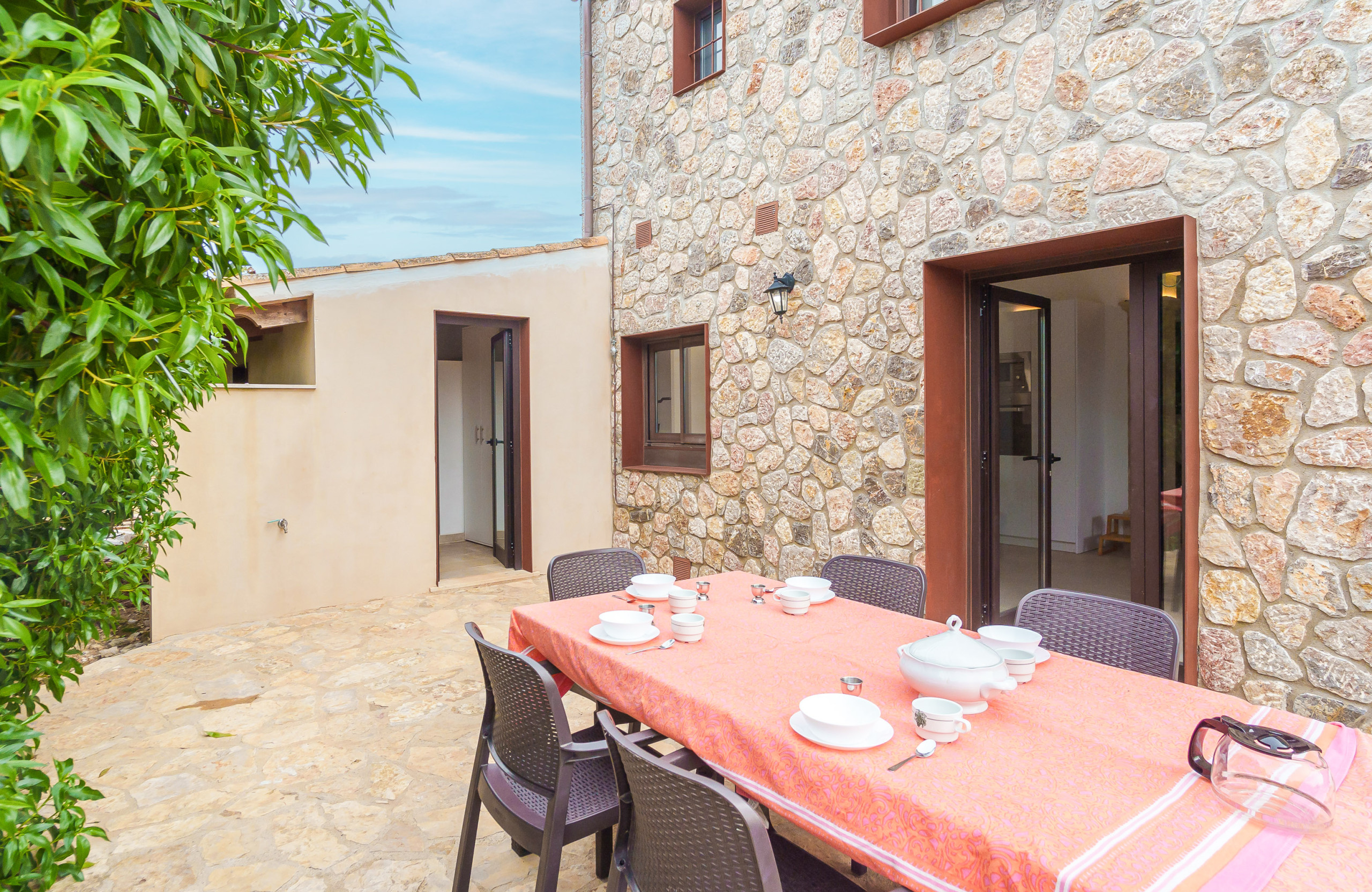 Gebaut aus mallorquinischem Naturstein, bewahrt die Wohnstätte den traditionellen Charakter der Insel und kombiniert ihn mit geräumigen, lichtdurchfluteten und funktionalen Räumen, die einen komfortablen Aufenthalt während des ganzen Jahres gewährleisten.