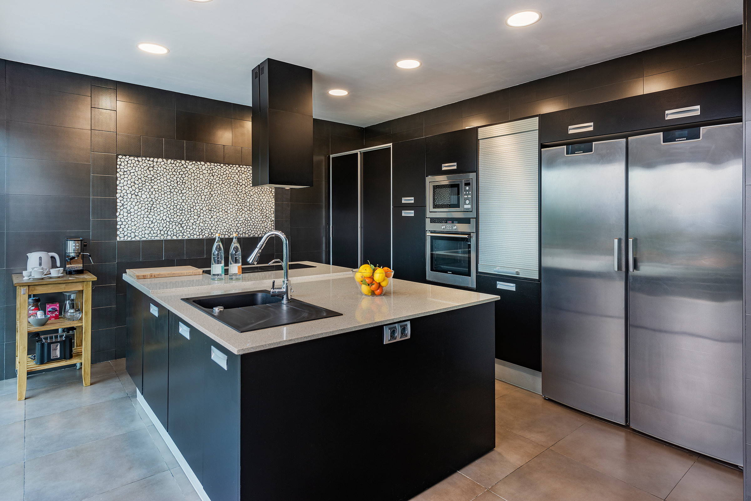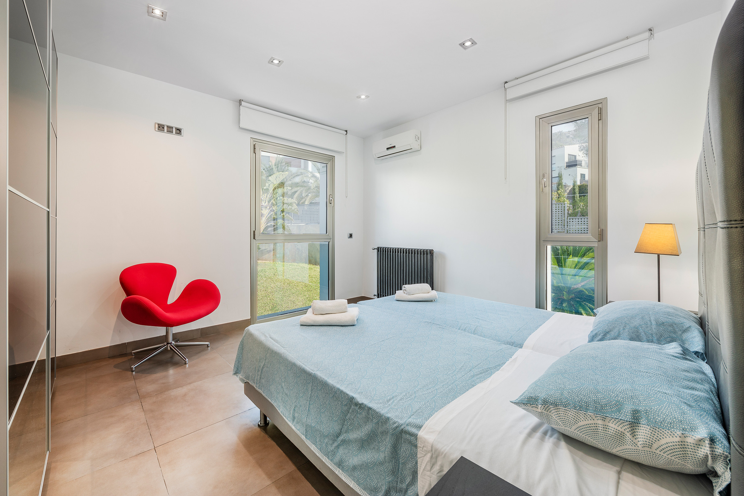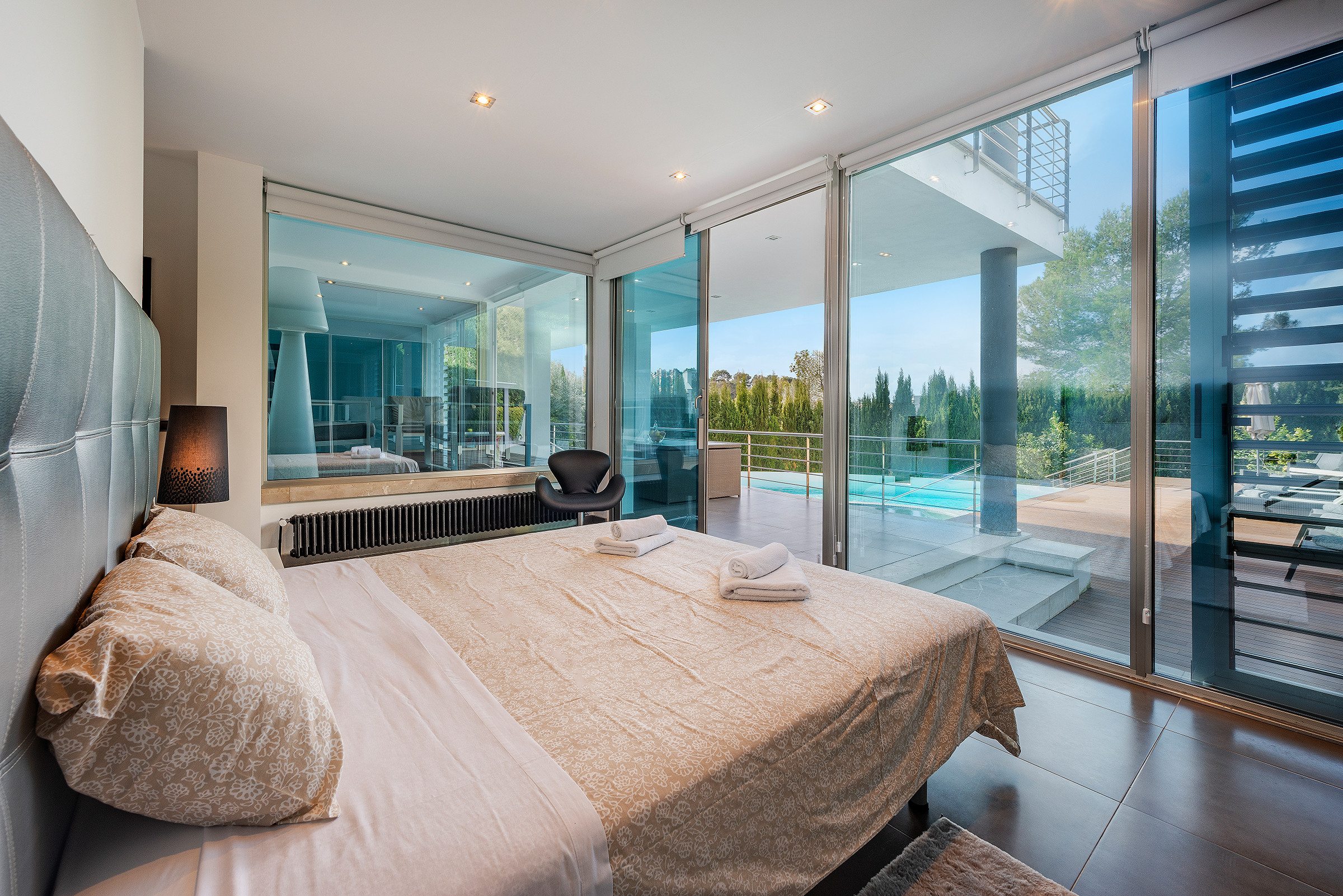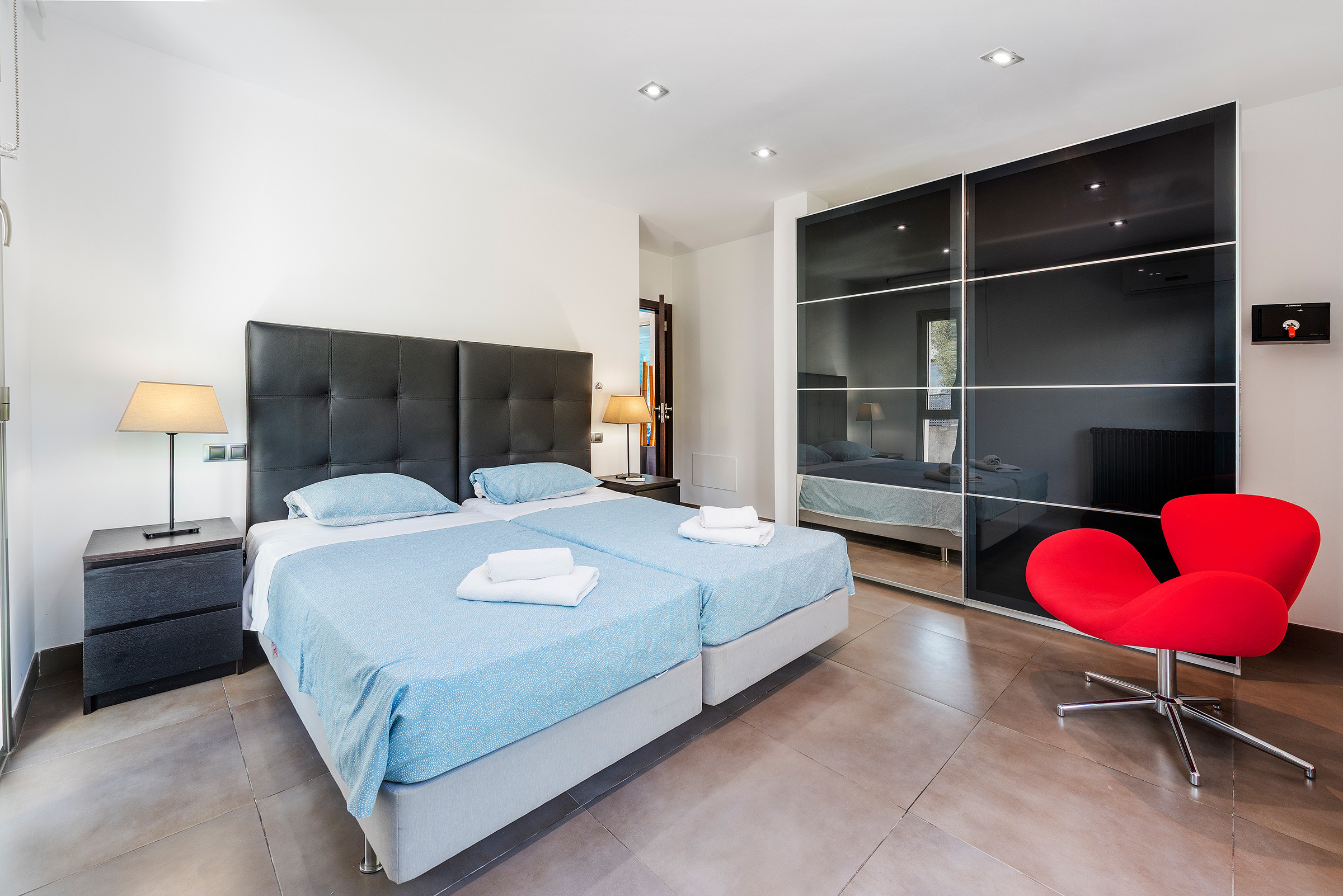 Spectacular luxury villa in the sky of Bonaire with holiday licence (ETV) for 8 people, the property consists of a plot of 1050m2 with 400m2 of housing, the dwelling has three floors, on the upper floor is the entrance of the house a spacious living-dining room, fully equipped American kitchen with views of Pollensa Bay, on this floor we also find a double bedroom with bathroom. On the ground floor there are three double bedrooms, three bathrooms (two of them en suite).