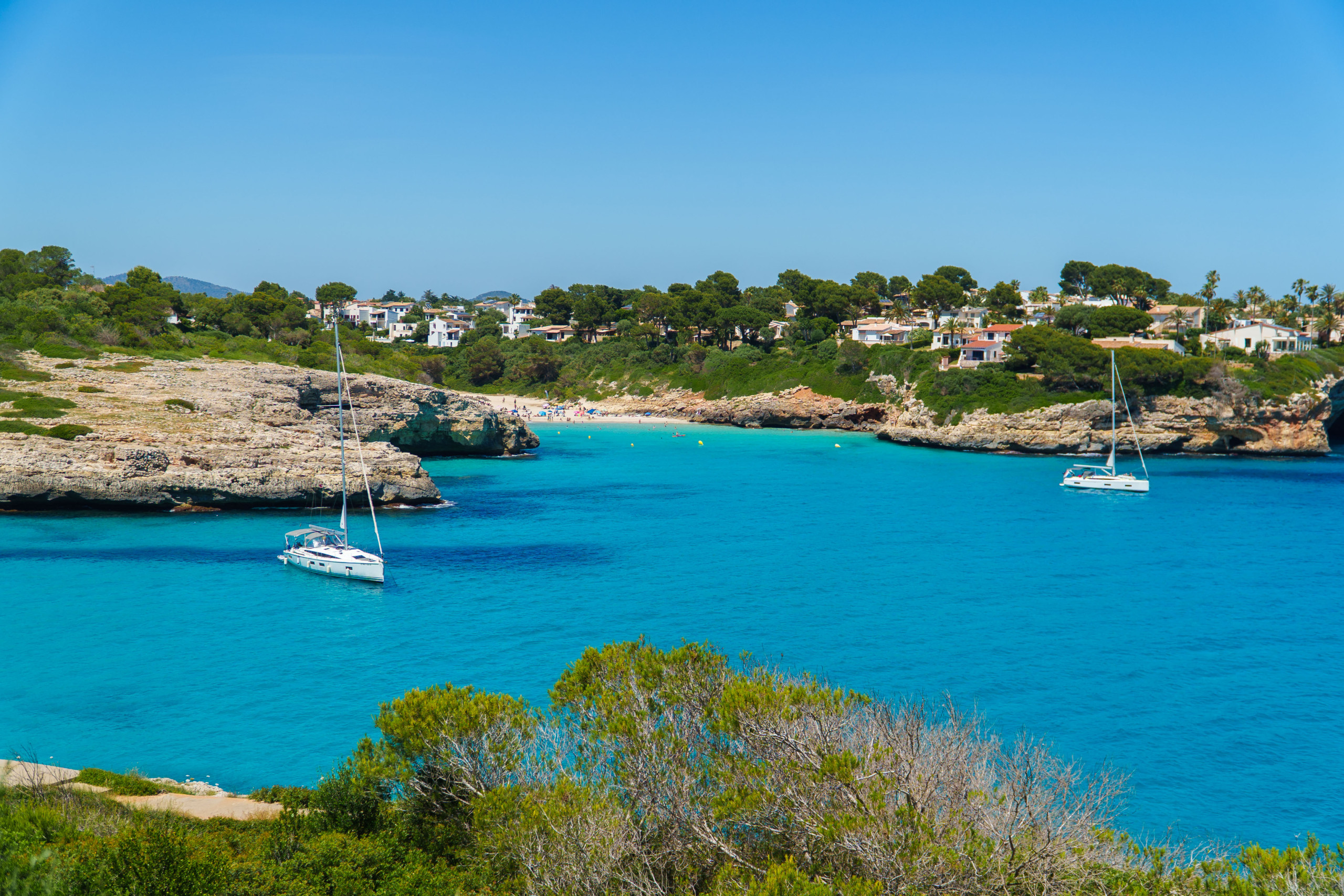 Cala Romántica (S'Estany d'en Mas) est une magnifique plage de sable blanc fin, entourée de falaises couvertes de pins et de végétation méditerranéenne.