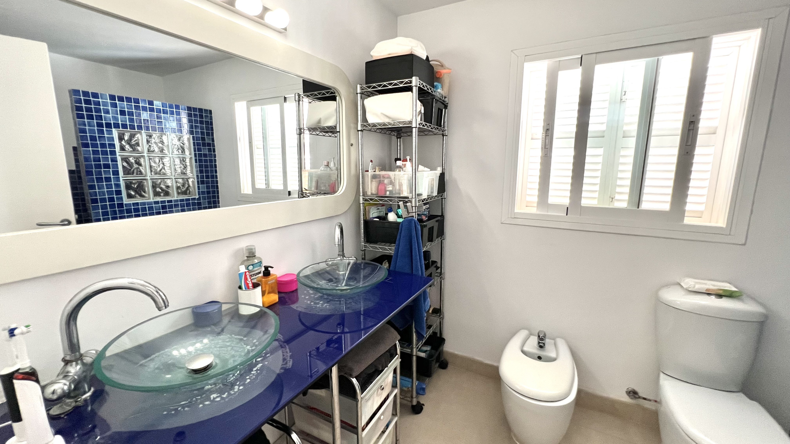 La vivienda distribuida en tres plantas, en la planta baja encontramos un amplio recibidor que nos da acceso al salón comedor, cocina completa semiabierta, una habitación doble con armario empotrado, un baño completo, y una puerta que nos da acceso a un amplio patio interior. Accedemos a la primera planta mediante una bonita escalera de diseño, en dicha planta dispone de un amplio distribuidor con bonitas vistas a la serra de tramuntana que nos da acceso a tres habitaciones dobles con armarios empotrados (vestidor en suite), dos baños completos (uno de ellos en suite). Por último una planta sótano utilizada en estos momentos como sala cine y gimnasio con dos amplias estancias utilizadas como vestidores actualmente.